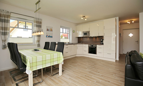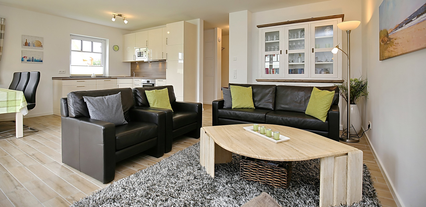 Unsere großzügige Doppelhaushälfte mit Reetdach bietet Ihnen einen gemütlichen Wohnraum mit Zugang zur Terrasse, drei Schlafzimmer und zwei moderne Bäder jeweils mit Dusche und einmal mit Wanne. Insgesamt haben Sie hier auf über 100 m² viel Platz für Ihren Urlaub. Zum Strand sind es etwa 300 m.